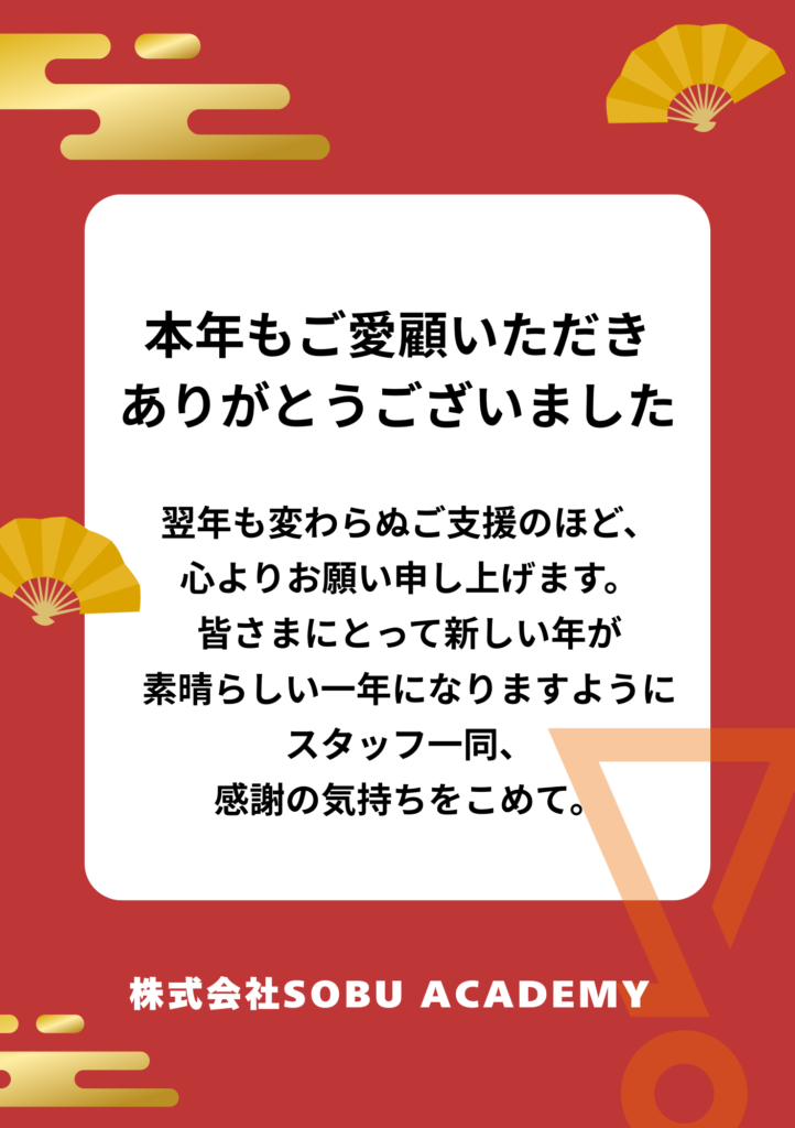 本年もSOBU ACADEMYの活動にご理解とご協力をいただき誠にありがとうございました。